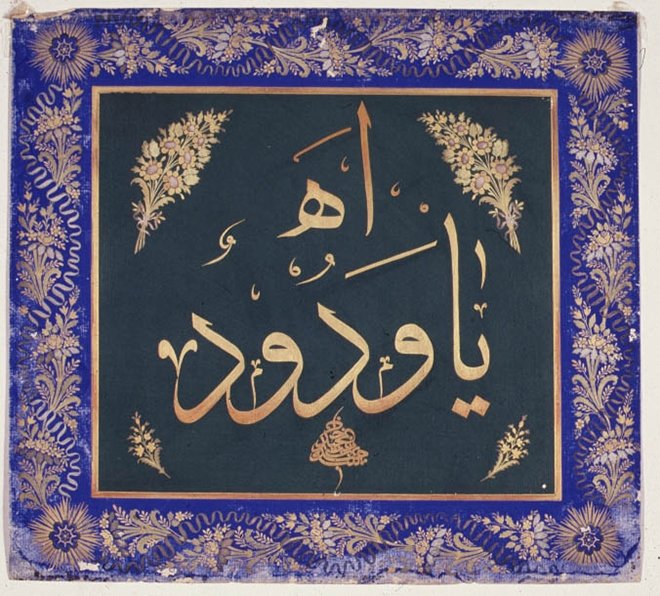 Resim 3: Sultan Abdülhamîd'in bilinen tek celî sülüs levhası: "Ah Yâ Vedûd" (TSMK.-GY 325/70)