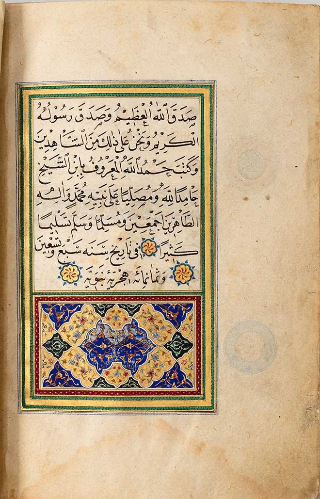 Resim 1: Şeyh Hamdullah'ın yazdığı mushafın zahriyesinden biri (TSMK, YY913).