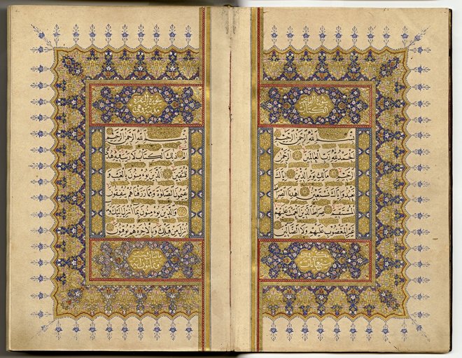 Resim 1: Hâfız Osman'ın yazdığı mushafın serlevhası, bu tezhîb, Kanbur Hasan Çelebi tarafından işlenmişdir (İstanbul Üniversitesi Nadir Eserler Kütüphanesi, A6549).