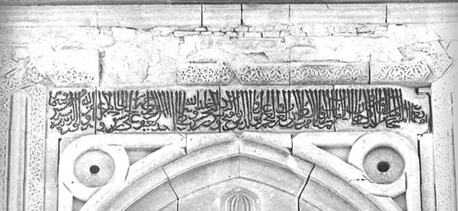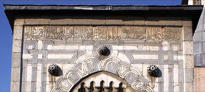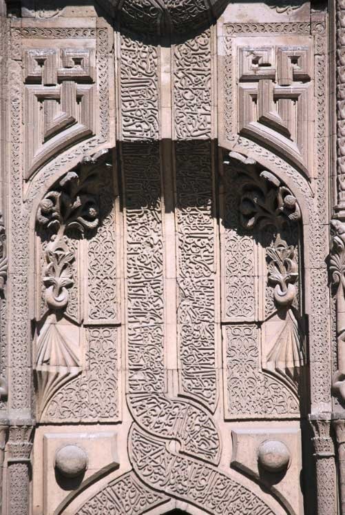 Resim: 4 - İnce Minare Medresesi (1260-65), Tâk kapısında celî sülüs yazı.