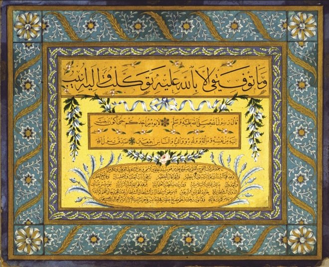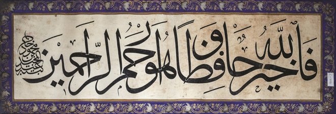 Resim 4: Sultan Abdülmecid'in celî sülüs bir levhası, Kur'ân-ı Kerîm, 12 'Yusuf', 64.
