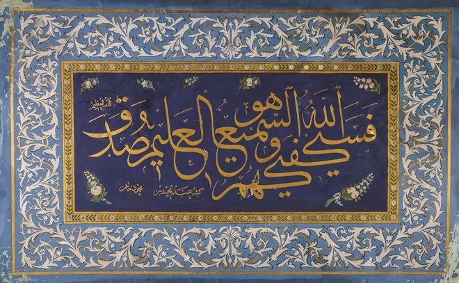 Resim 3: Sultan Abdülmecid'in celî sülüs zerendûd levhası, Kur'ân-ı Kerîm, 2 'Bakara', 137.